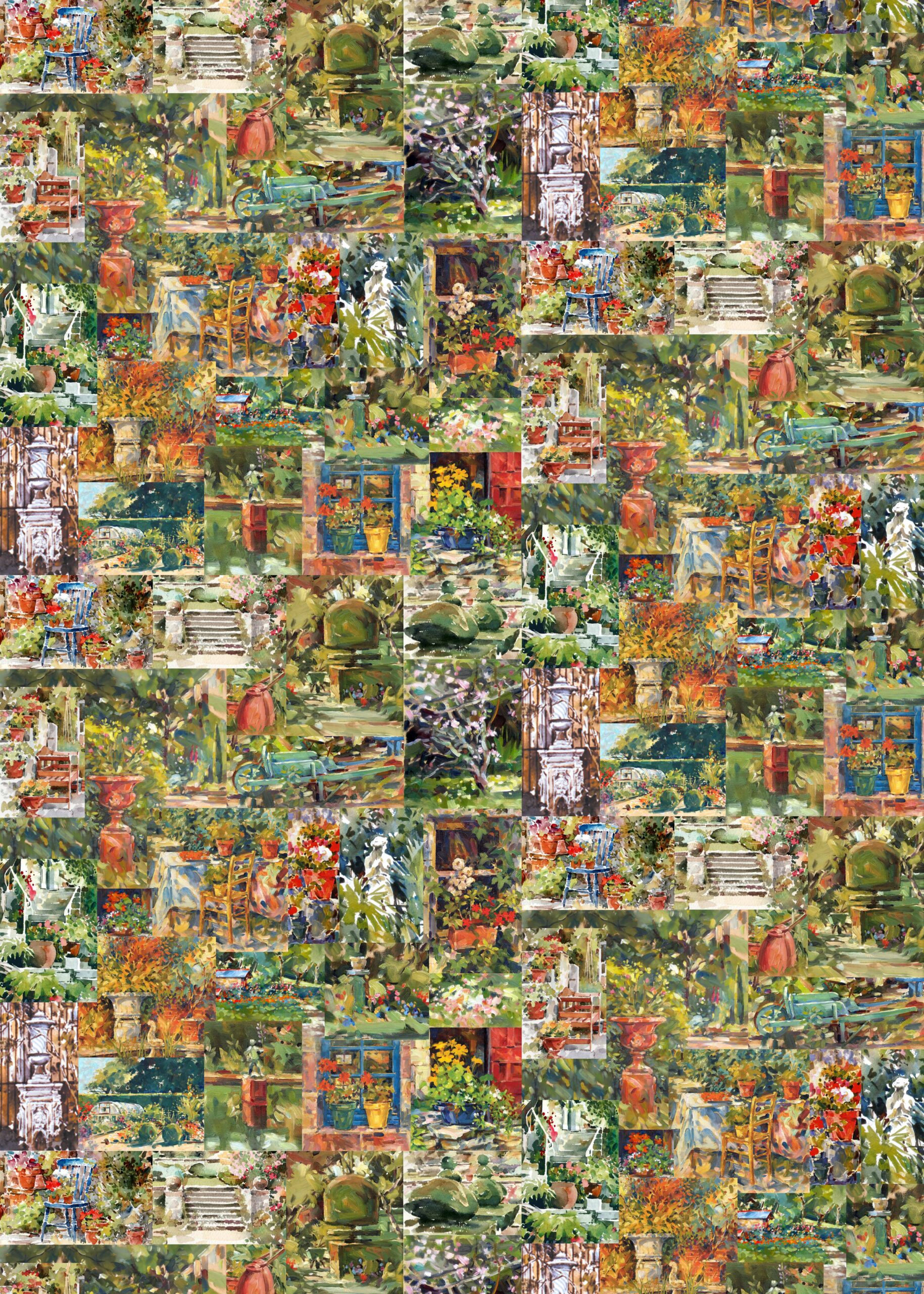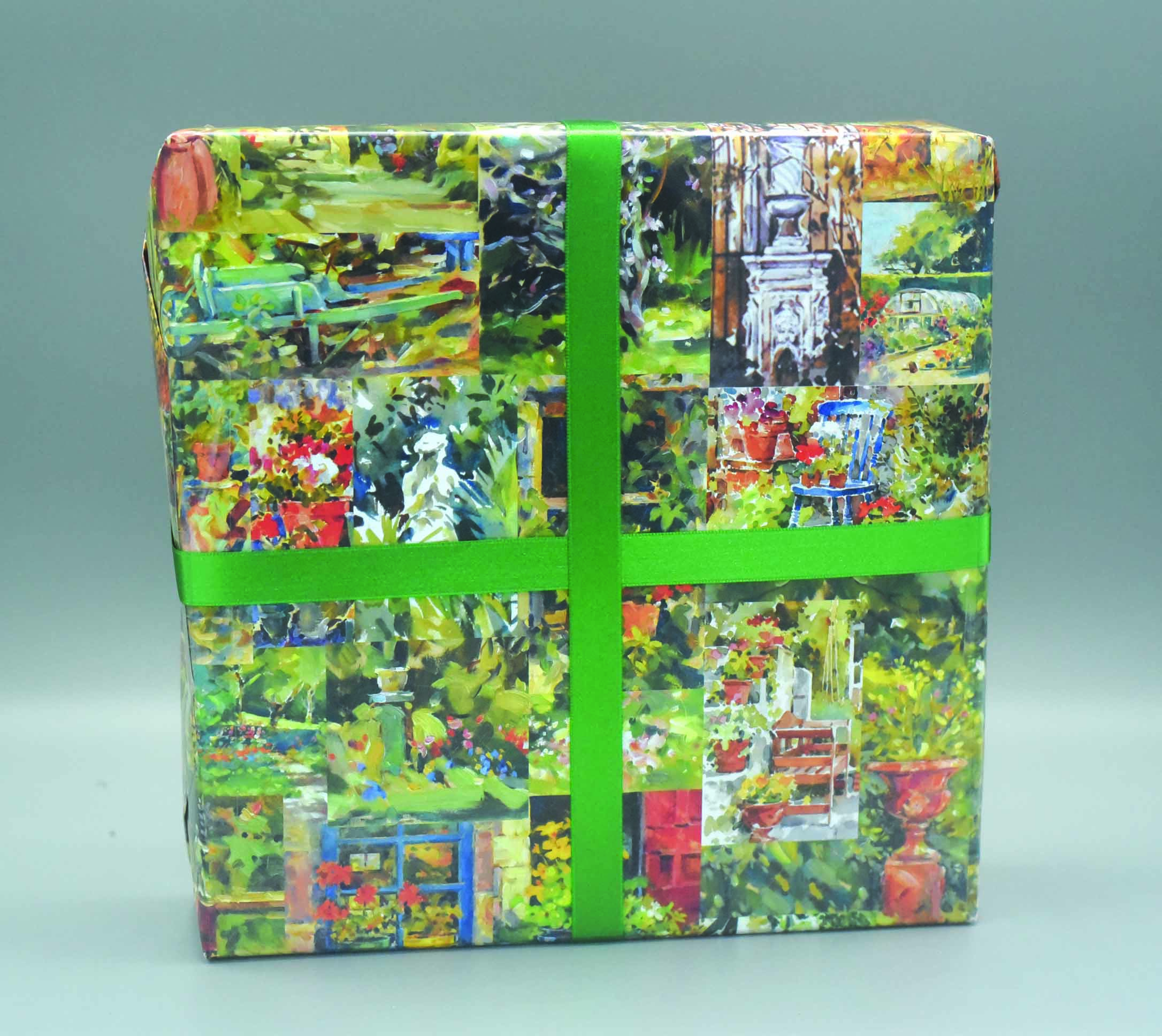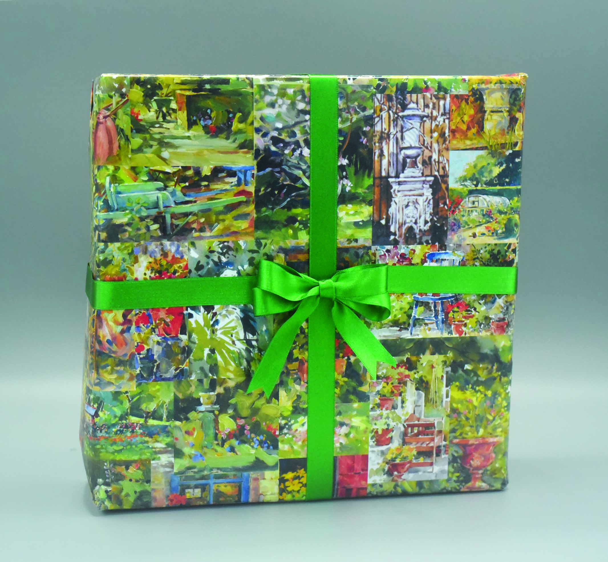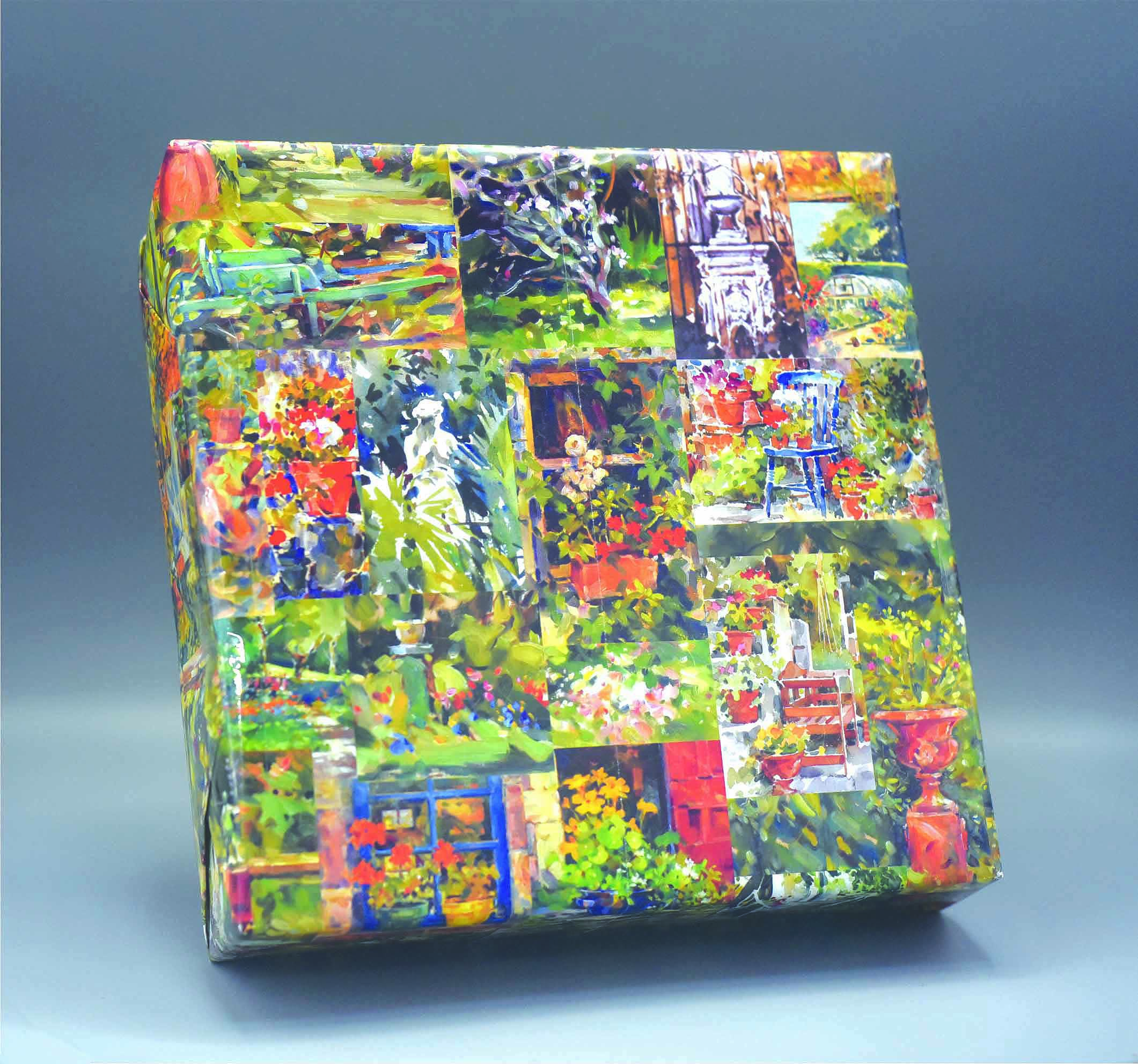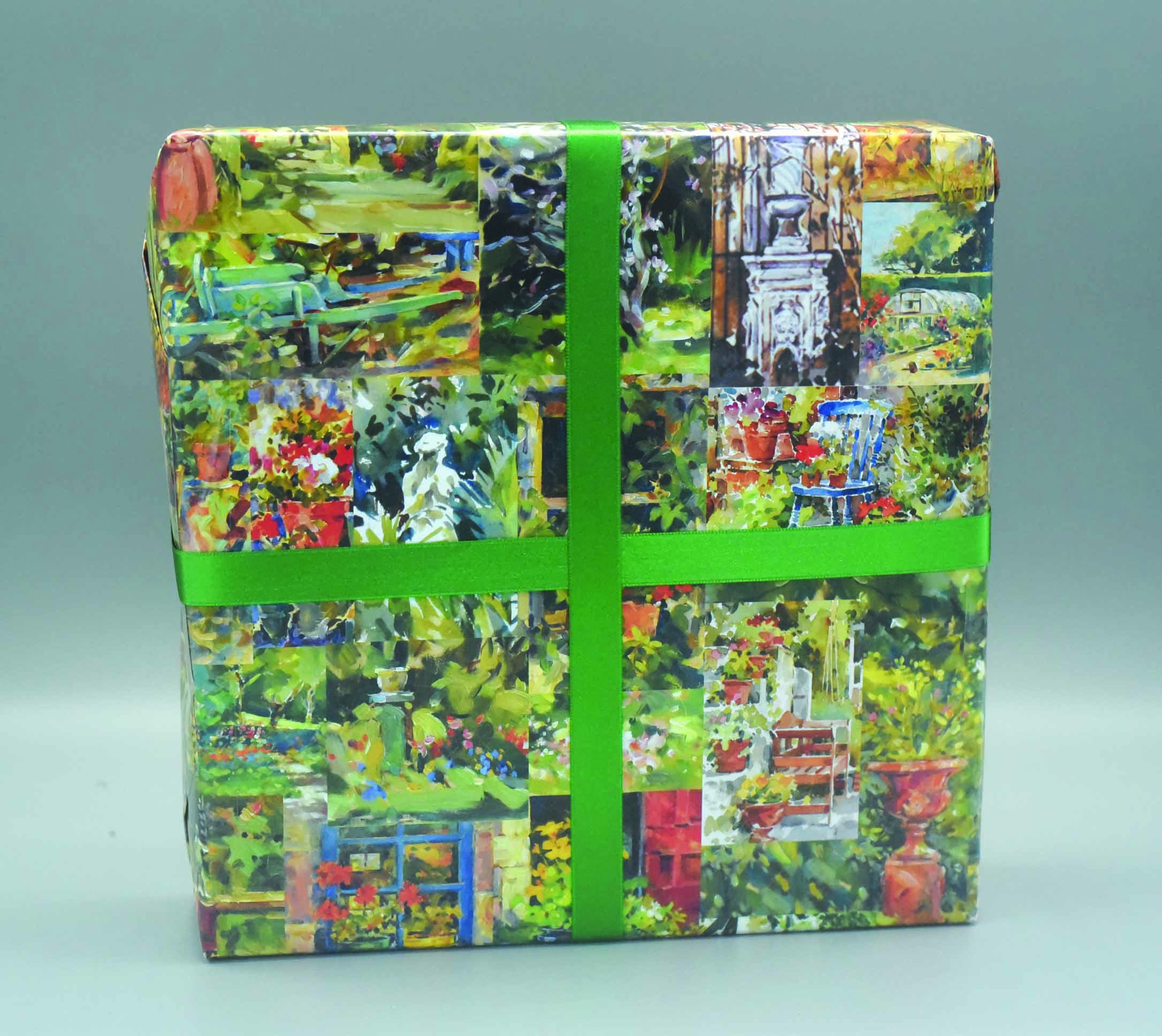 This design is made up of a montage of images from Tom’s garden paintings compiled over many years. The Gift Wraps measure 700mm x 500mm and are printed on 115g silk finish paper. All of the paintings featured were made on location in front of the subject and reflect Tom’s love of colour. The Gift wraps are sold in packs of three.
